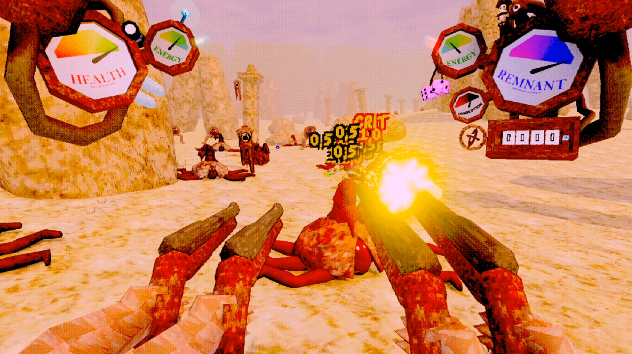 Wield up to 6 guns at once, unbox and stack 30+ unique items, and kill a ton of weird fleshy enemies